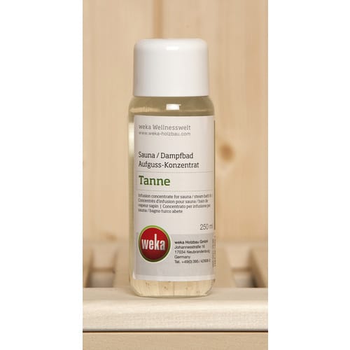 WEKA steht seit vielen Jahren für höchste Qualität und Sicherheit im Bereich Sauna und Wellness. Auch das WEKA Aufgusskonzentrat »Tanne« entspricht diesen hohen Standards. Es wird aus sorgfältig ausgewählten Inhaltsstoffen hergestellt und unterliegt strengen Qualitätskontrollen.
